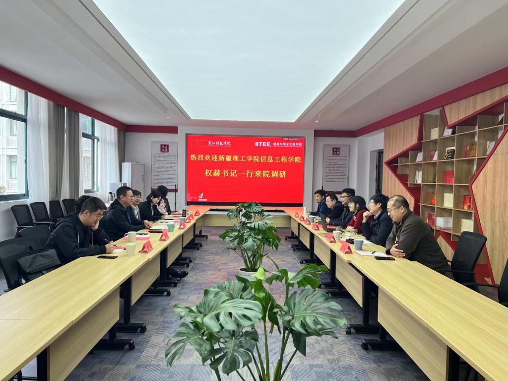 3月8日,新疆理工学院信息工程学院书记权赫一行六人来我院进行交流学习,副院长魏英、计算机系主任向坚、软工系主任程志刚、电子系主任王中鹏、电子系教师张铮参加了此次会议。会议由我院书记张蕾主持。